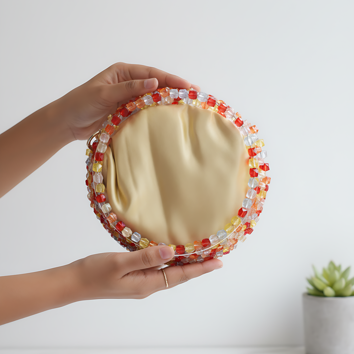 Design: Multicoloured hand-beaded potli