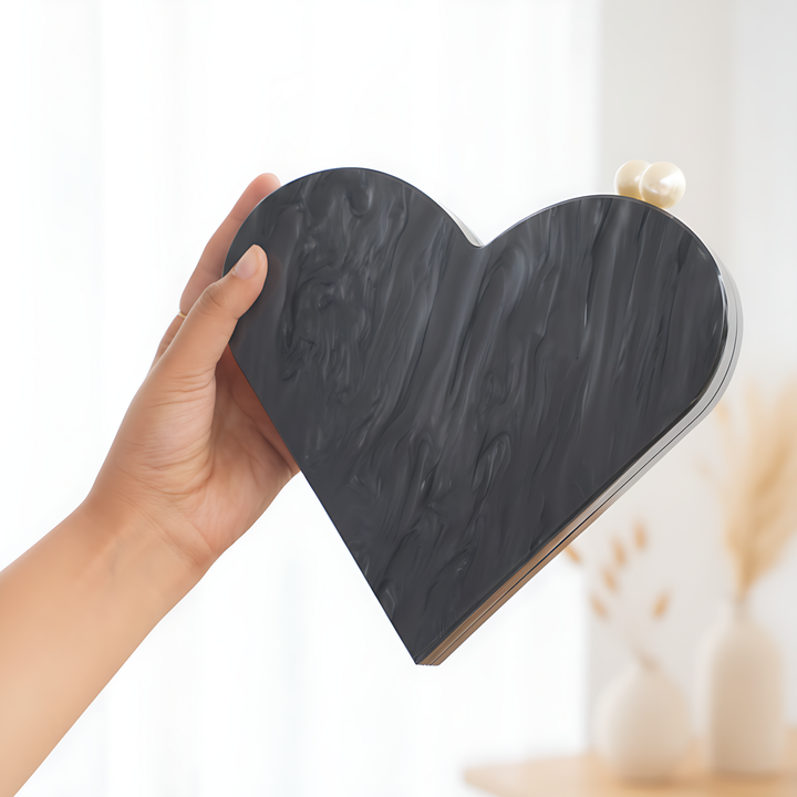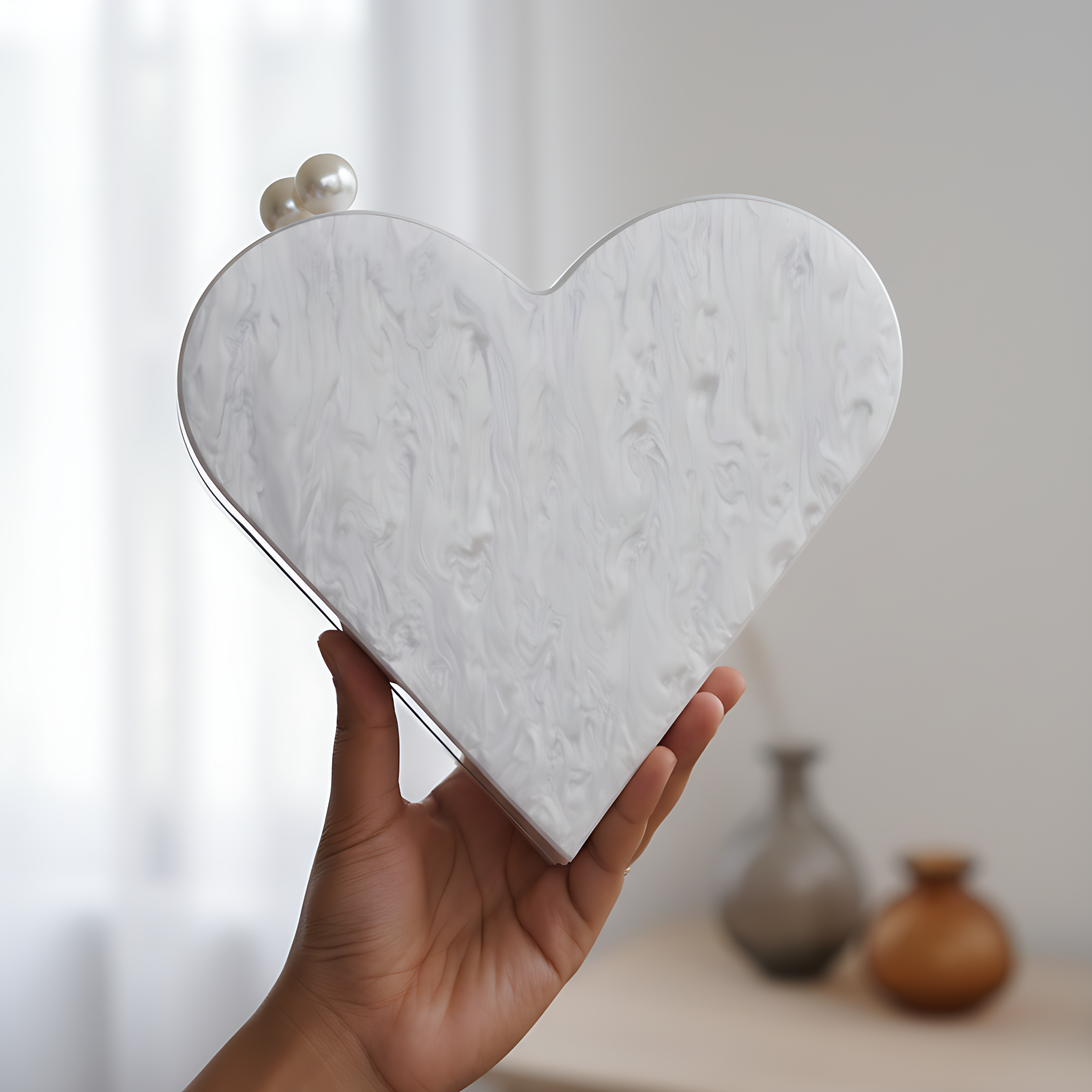 Turn heads at every event with this elegant Heart Shape Acrylic Clutch, beautifully crafted from premium marble-effect acrylic. Its glossy finish and sculpted heart silhouette give it a luxurious charm, making it the perfect accessory for weddings, parties, and special evenings. Designed for women who love statement pieces, this clutch combines style, durability, and sophistication in one stunning design.