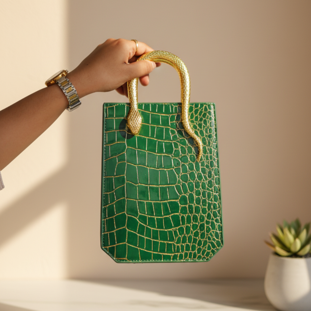 Make a bold statement with the Serpent Handbag - a perfect blend of modern sophistication and edgy elegance. Designed for the contemporary woman, this bag adds a distinctive touch to any outfit with its sleek structure and serpent-inspired design.
